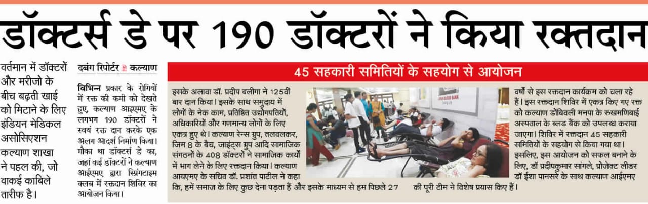 DOCTORS DAY CELEBRATION & BLOOD DONATION CAMP ORGANIZED BY INDIAN MEDICAL ASSOCIATION OF KALYAN